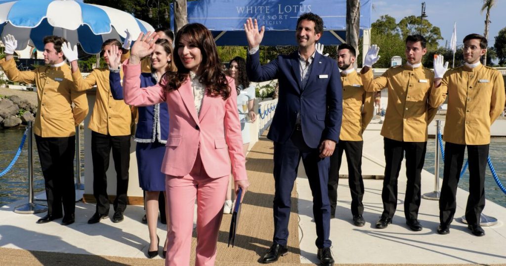 É uma cena repetida, até certo ponto, na abertura da segunda temporada do show, em que Valentina (Sabrina Impacciatore), a diretora obstinada da fictícia filial siciliana da rede de resorts, reúne sua equipe para receber um iate cheio de convidados. no cais. “Cumprimente-os juntos”, ela ordena, “com a mesma mão direita”.